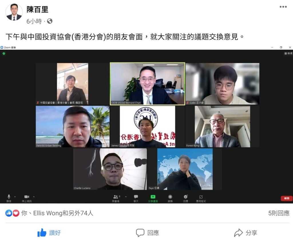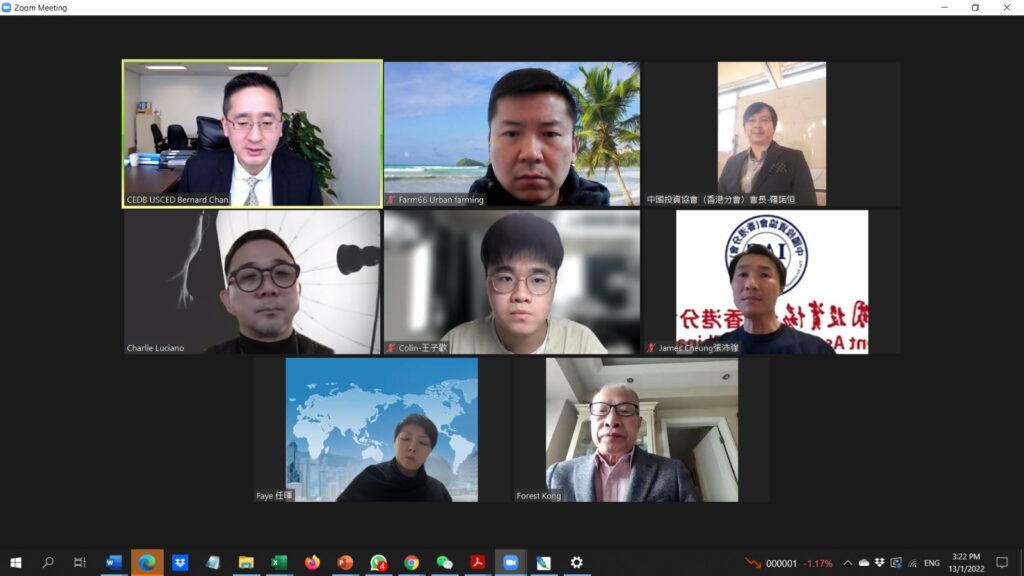 2022年1月13日本會與商務及經濟發展局陳百里副局長在網上會議介紹本會發展交流意見